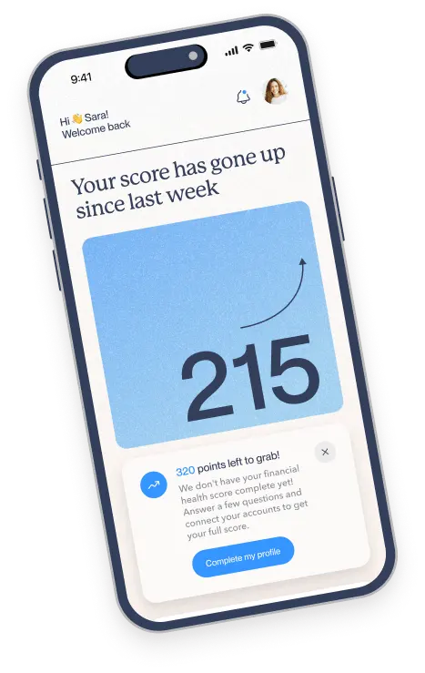 Start with a personalized Financial Health Score that gives you a full picture of where you stand across saving, spending, debt, investing, and more.